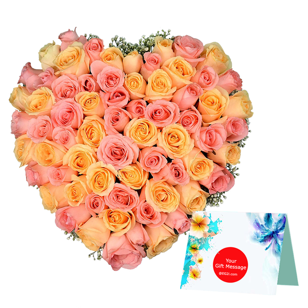 100 Pink and Yellow Roses Heart Shape Arrangement
