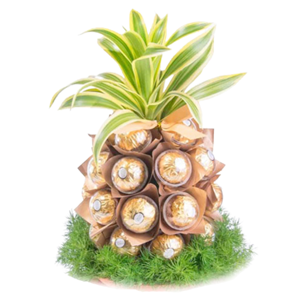 24pcs Ferrero Rocher in Pineapple shape with Greenary in basket..