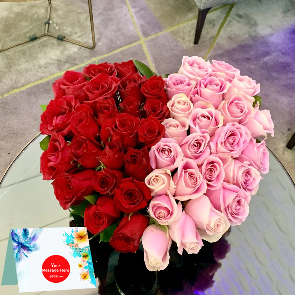 30 Pink and 30 Red Roses Heart Shape Arrangemnet