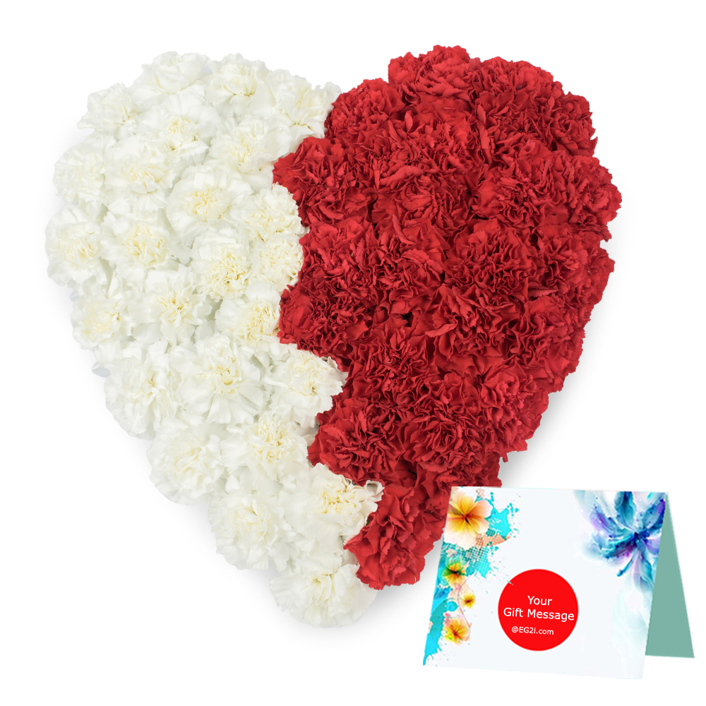 40 Red and 40 White Carnation Heart Shape Arrangement