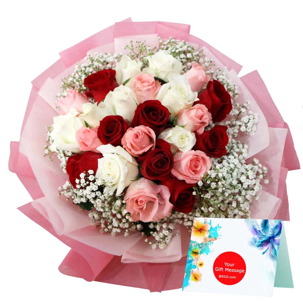 40 Red, Pink and White Roses Love