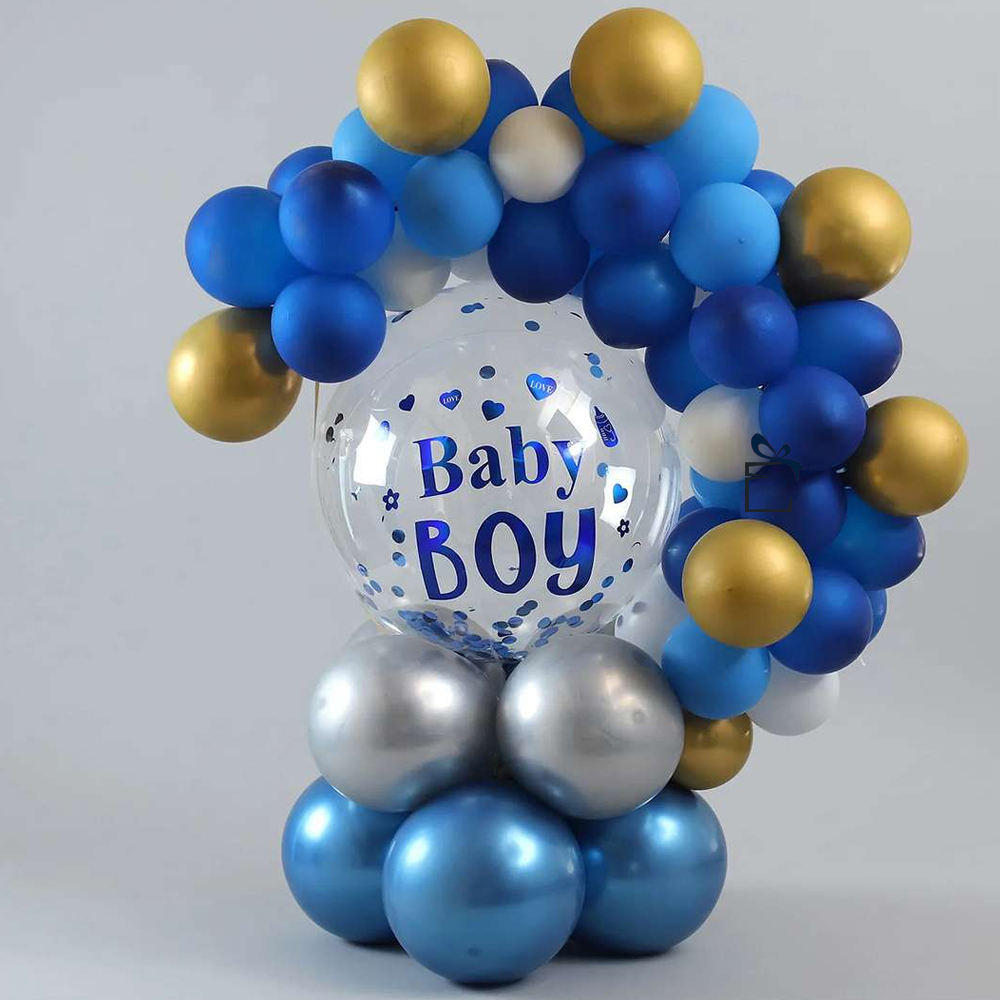 4. 40pcs Blue ,white, Golden Mixed Balloons Arch.