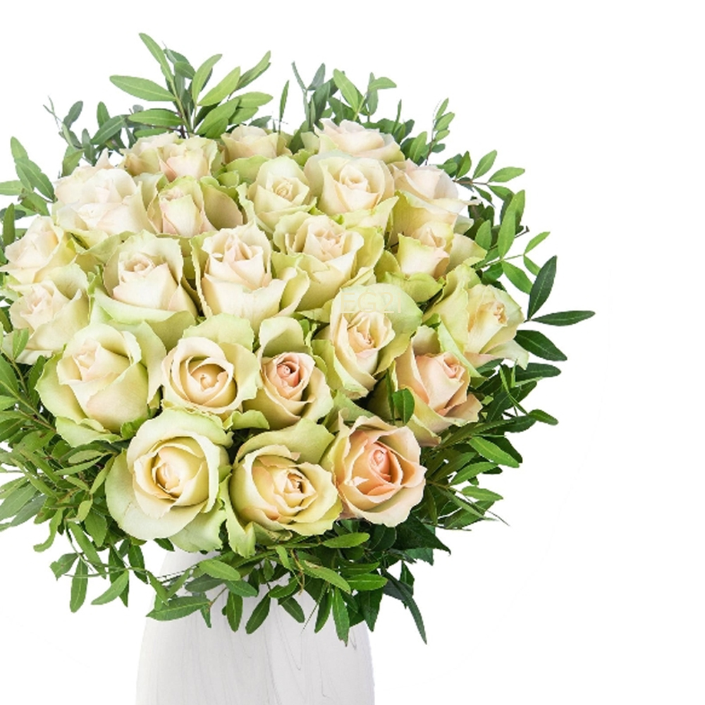 This sweet gift contains roses in pretty pastel shades complimented with green pistache. A lovely gift for someone you care about.