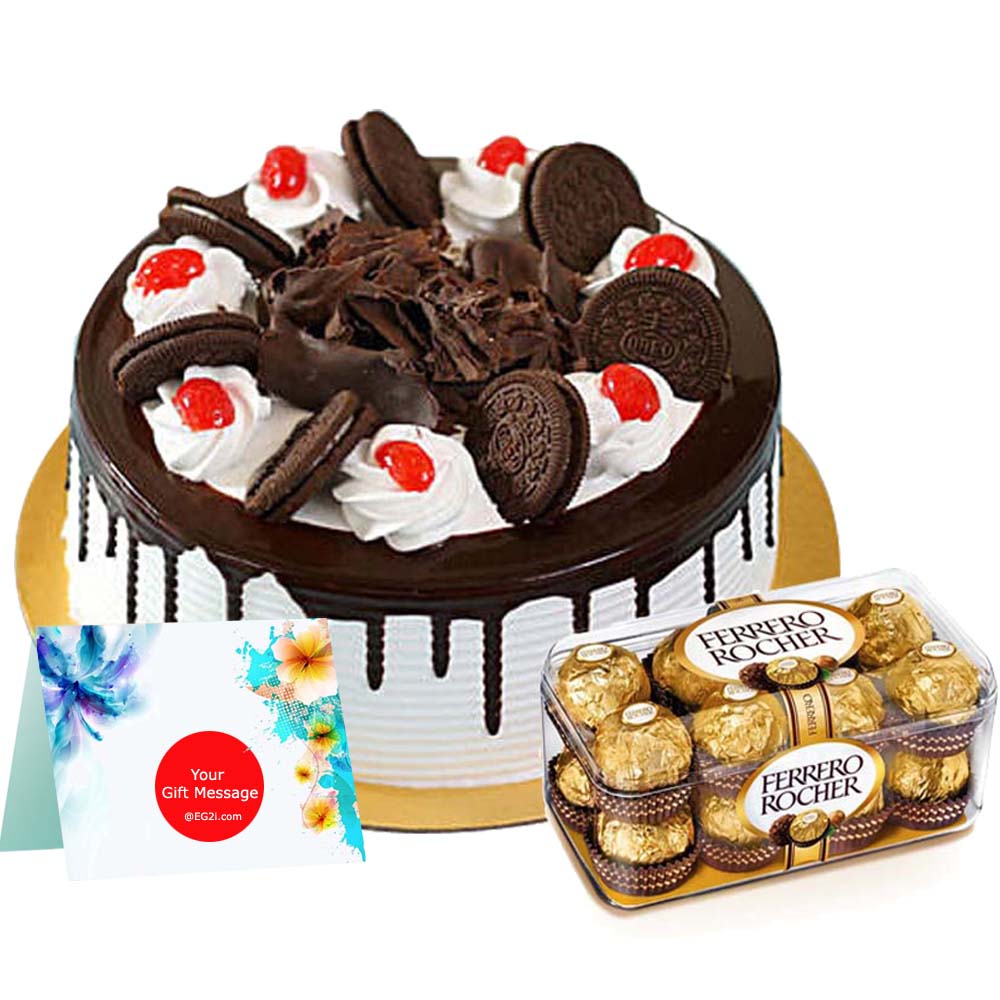 Oreo Black Forest Cake with 200gm Ferrero Rocher Chocolates.