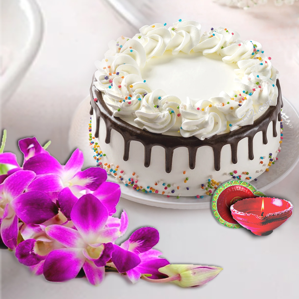 The cake stand, cutlery accessories used in the image are only for representation purposes. They are not delivered with the cake.
