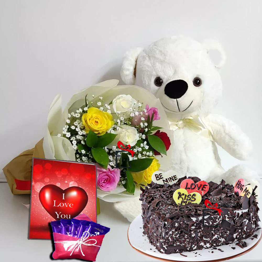 Combining flowers with a teddy bear and chocolates creates a delightful and comprehensive gift package that is perfect for expressing love, care, and affection.Send this combo gifts online for your valentine, Birthday, anniversary gifts anywhere anytime.