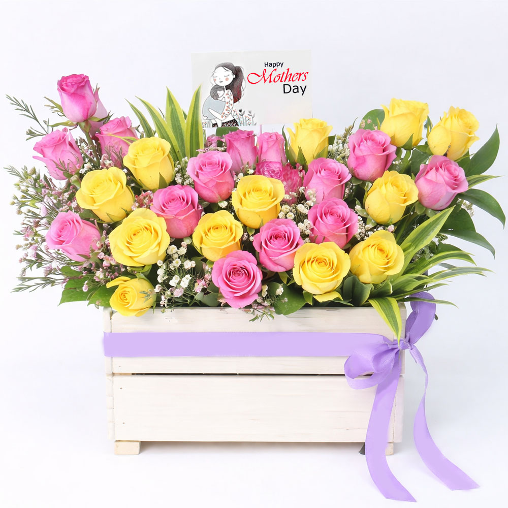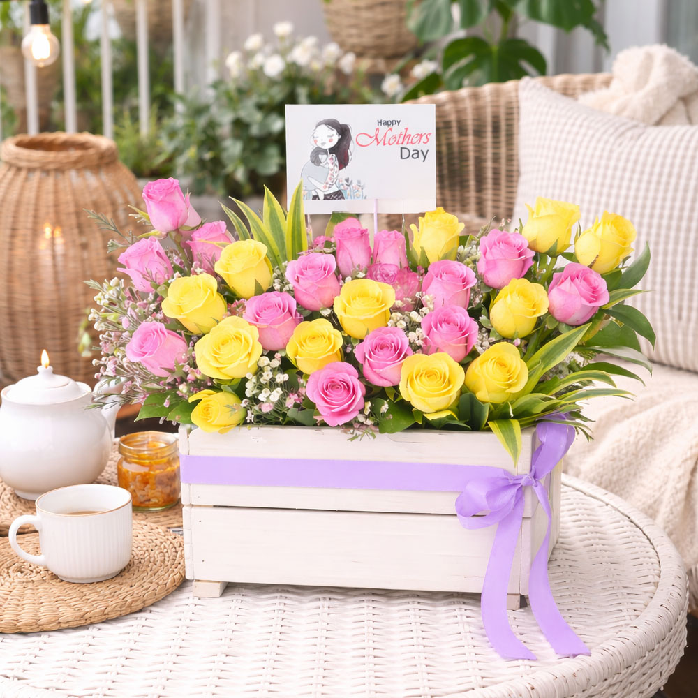 Brighten Mother's day with this beautifully arranged Fresh Flower Basket a perfect gift for this occasion in India. Designed with a mix of handpicked fresh blooms this elegant basket showcases vibrant colors and natural fragrance making it a delightful surprise for your MOM loved ones.