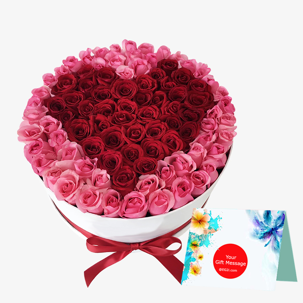 Basket of 100 Red Roses in Heart with Surrounding 100 Pink Roses Round Shape.