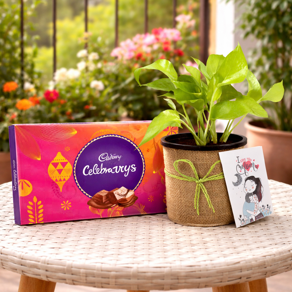 The live plant symbolizes love care and growth adding a touch of freshness to any home or balcony space. Alongside it the premium Cadbury chocolates bring a rich indulgent taste that makes the occasion even more special. Whether you�re near or far this unique gift combo is a meaningful way to express your gratitude and affection.
