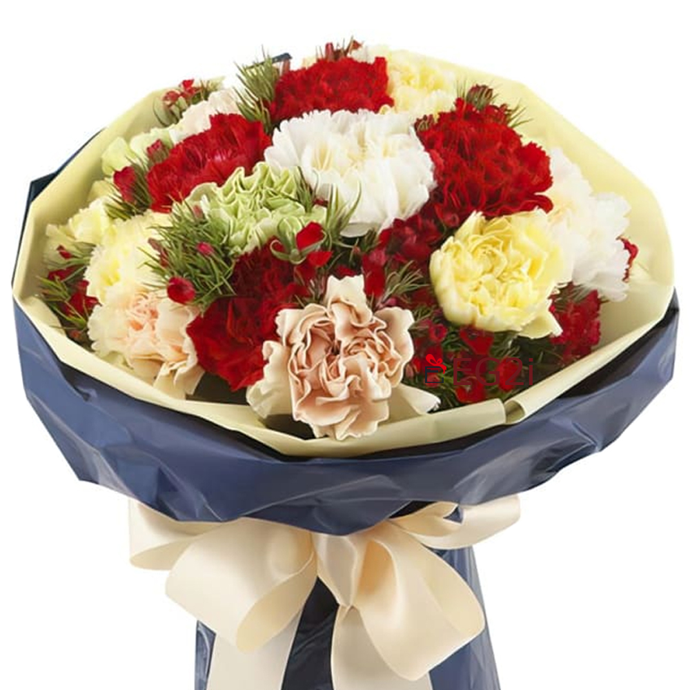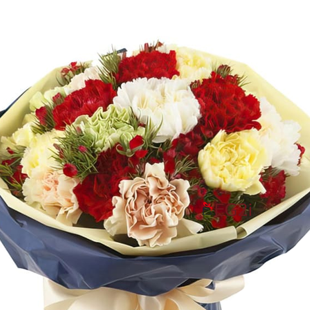 Carnations are a versatile and charming choice for a bouquet, often symbolizing love, fascination, and distinction. Send This Execlusive Bouquet anywhere in India for Birthday, Anniversary, Wedding, Mothers day, Love Gifts etc