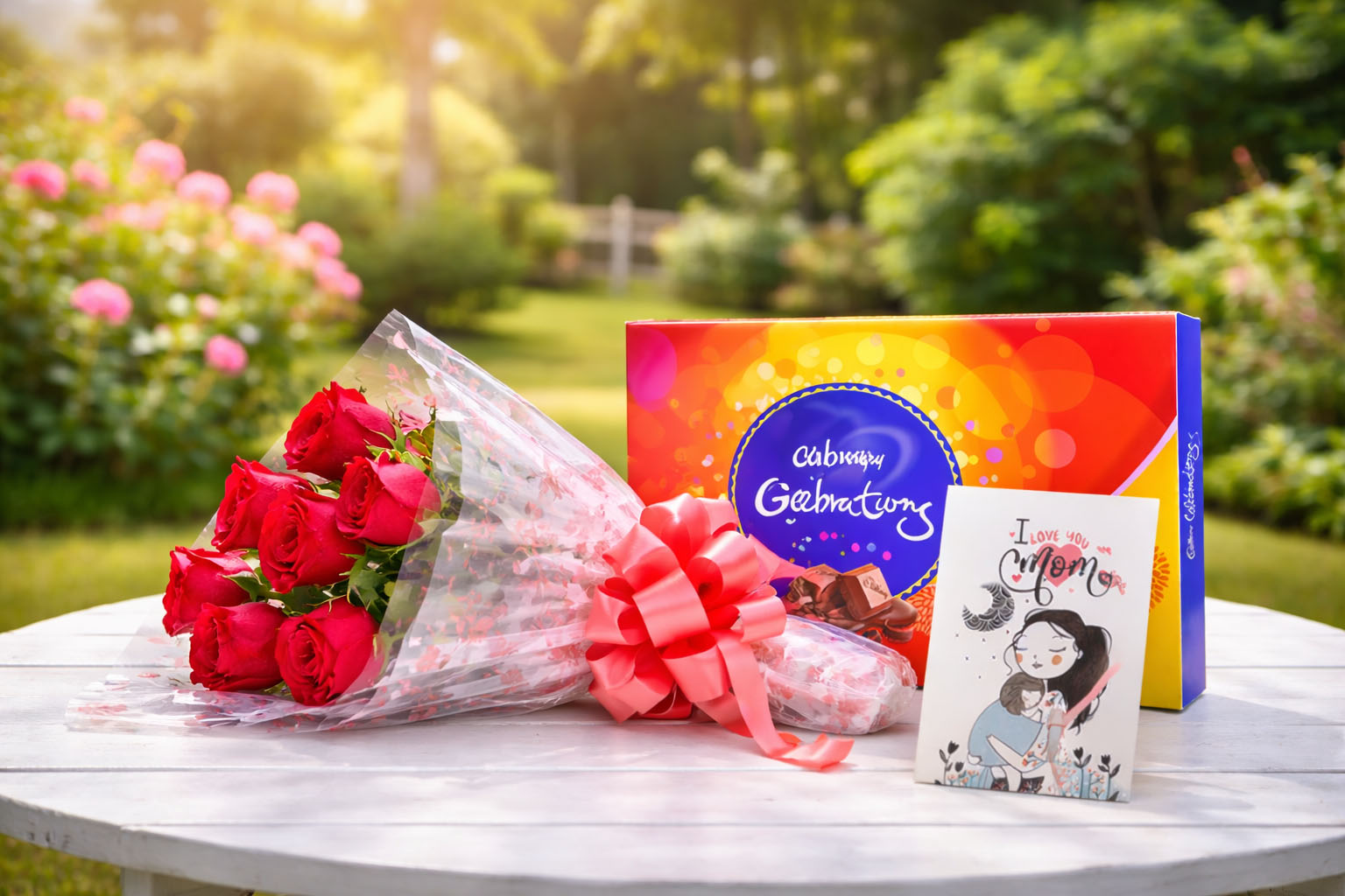 The fresh flowers symbolize care warmth and beauty instantly brightening up any space while the rich indulgent chocolates add a sweet touch to the celebration. Together they make a thoughtful and memorable gift that your mother will truly cherish.
