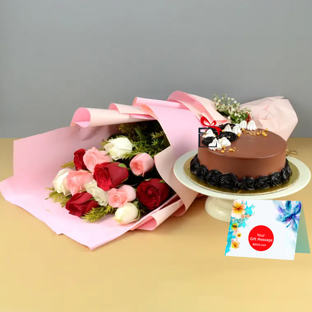 Pair a bouquet of fresh flowers with a delicious cake for a thoughtful gift. You can choose flowers that complement the flavor or theme of the cake. For instance, pair a classic cake with a bouquet of flowers.