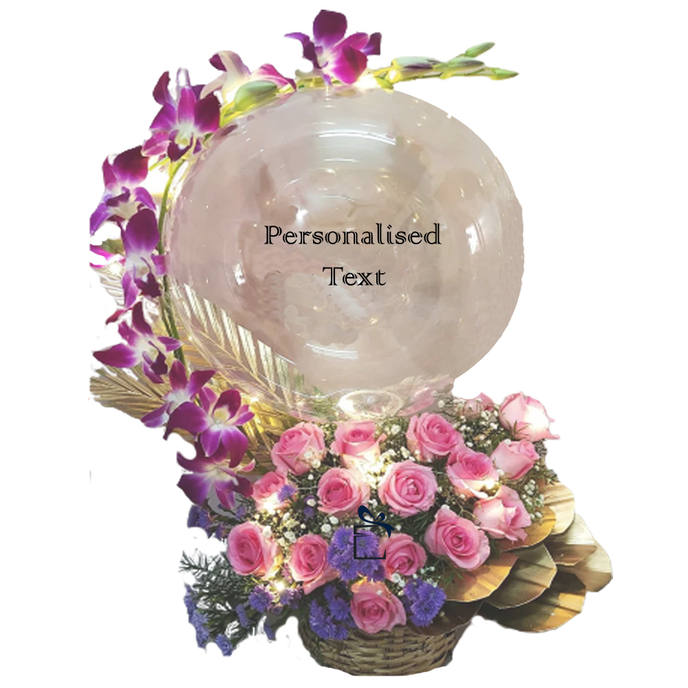 Flowers with balloons baset Arrangemnet