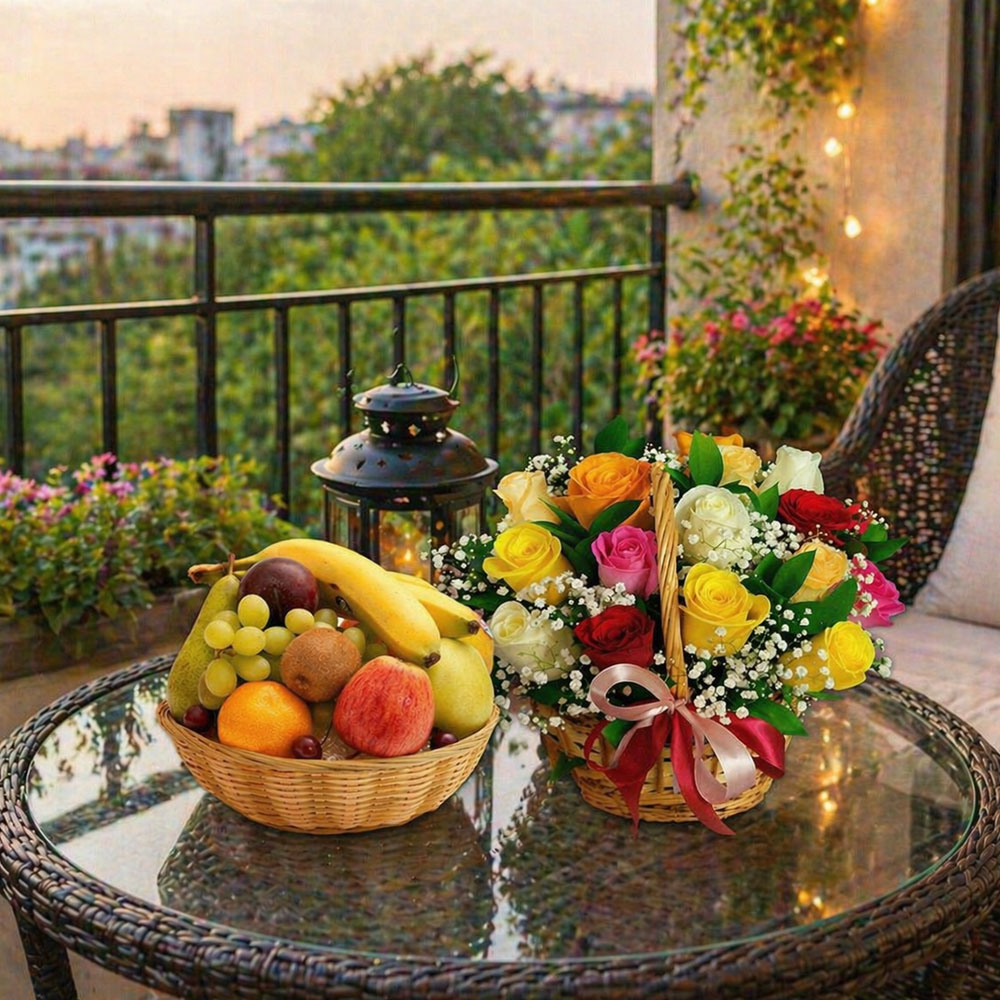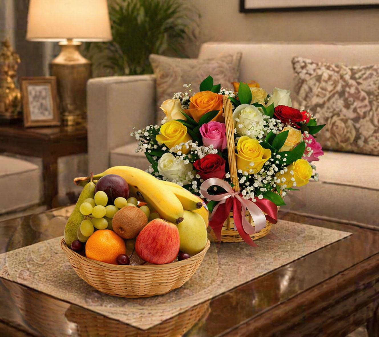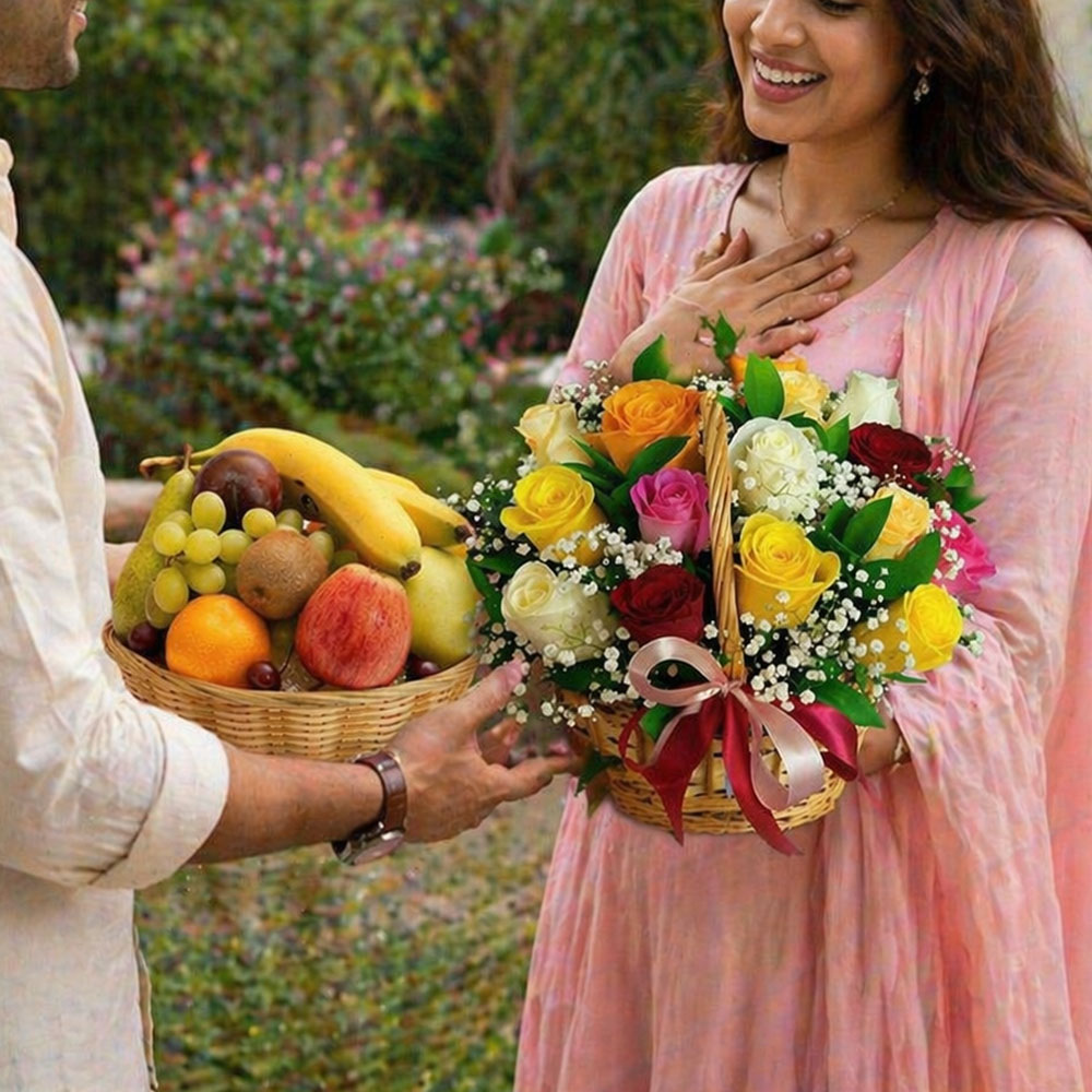 Send a healthy and beautiful surprise with this elegant Fresh Flowers & Fresh Fruit Basket perfect for gifting across India. This thoughtfully curated combo features a vibrant arrangement of handpicked fresh flowers paired with a selection of premium seasonal fruits making it an ideal gift for both celebrations and wellness.