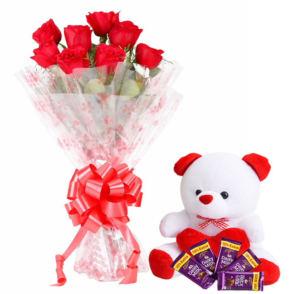 Roses Bouquet with Soft Toys and Chocolates Combo.