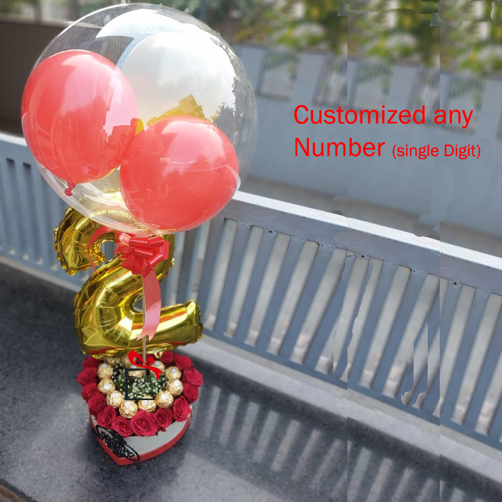 Heart Box Flowers Arrangement with Balloons Bouquet