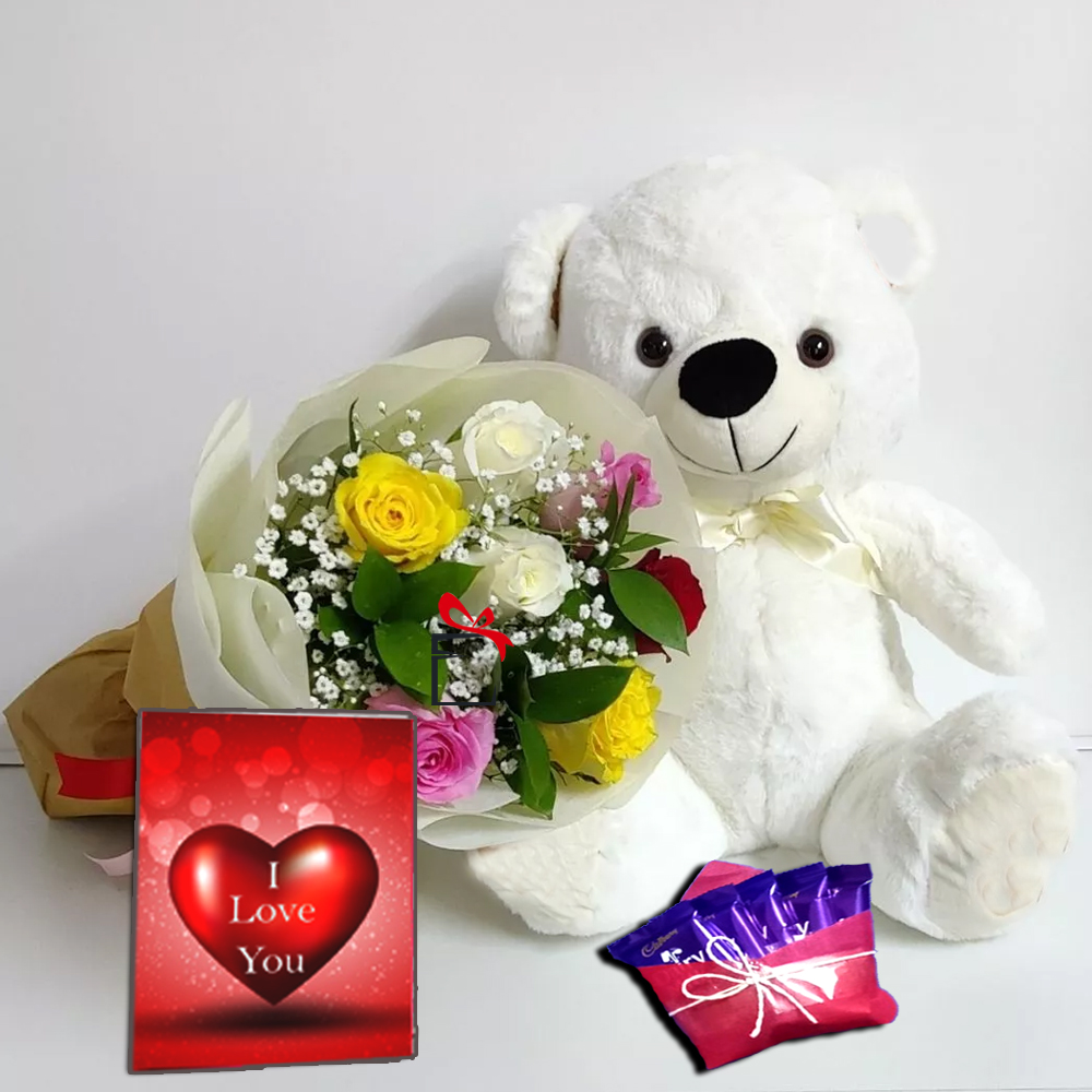 Combining flowers with a teddy bear and chocolates creates a delightful and comprehensive gift package that is perfect for expressing love, care, and affection.Send this combo gifts online for your valentine, Birthday, anniversary gifts anywhere anytime.