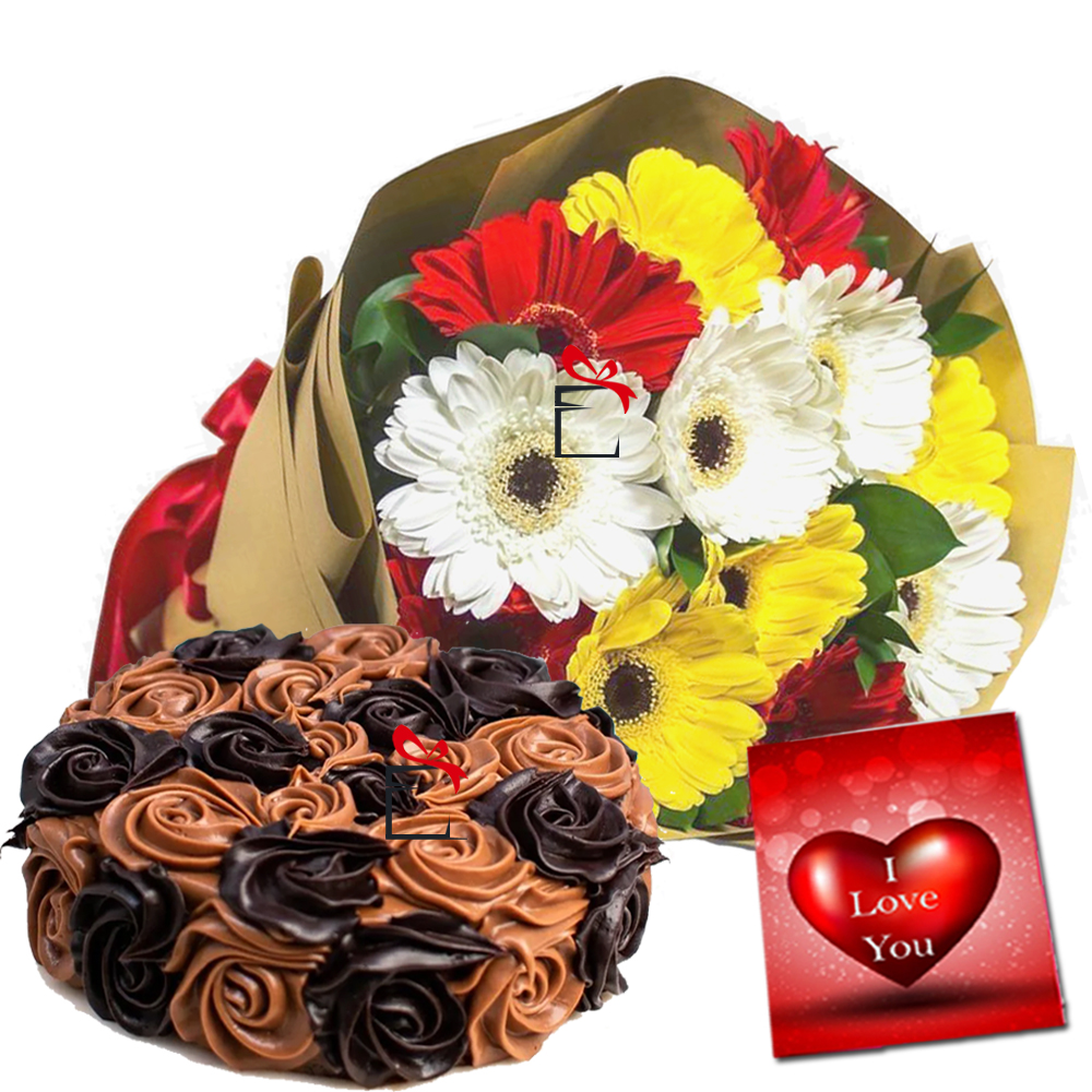 Pairing gerbera with cake creates a lively and colorful ensemble, perfect for various occasions. Gerbera are known for their vibrant hues and cheerful appearance, making them an excellent choice to complement the sweetness of a cake.Book your Valentine or Love of combo roses with a cake online now.