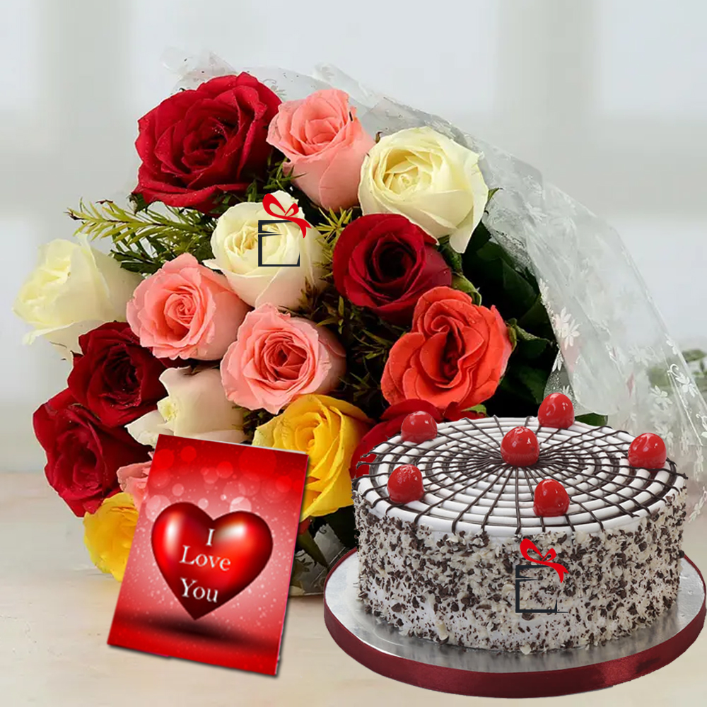 Combining a bouquet of mixed roses with a butterscotch cake is a delightful choice that blends the beauty of flowers with the sweet and nutty flavors of the cake.Book your Valentine or Love of combo roses with a cake online now.