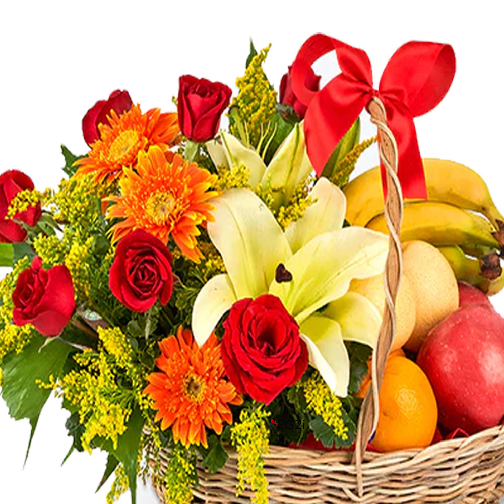 A fresh flowers and fresh fruit basket combines the natural beauty of blooming flowers with the vibrant appeal of ripe, delicious fruits, making for a delightful and thoughtful gift. The fresh flowers could include a mix of vibrant blooms like roses, lilies, or sunflowers, creating a burst of color and elegance. Their fragrance adds a pleasant touch, enhancing the overall experience. Alongside, the fresh fruits—such as juicy apples, bright citrus, sweet grapes, and exotic tropical fruits—offer a refreshing and healthy indulgence.
