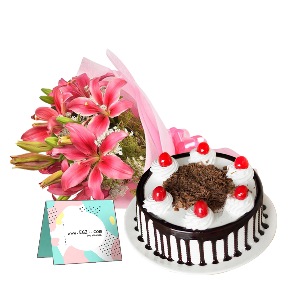 Pink Lilies with Black Forest cake