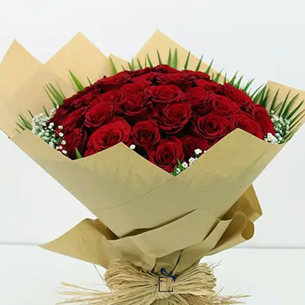 Surrounding with Arika pulm and Gypsy also Brown paper Wrapping and white Raffia bow.