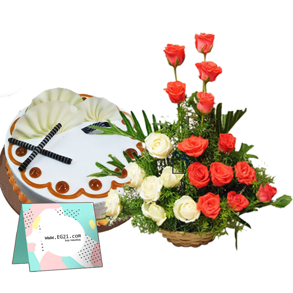 Roses Basket with Butterscotch Cake