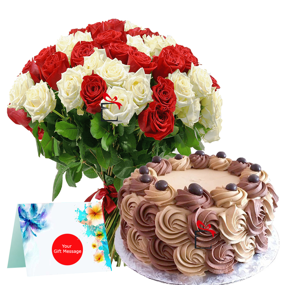 Send or Buy This combo of flowers and cake online for anniversaries, birthdays, or any occasion where beauty and decadence intertwine.