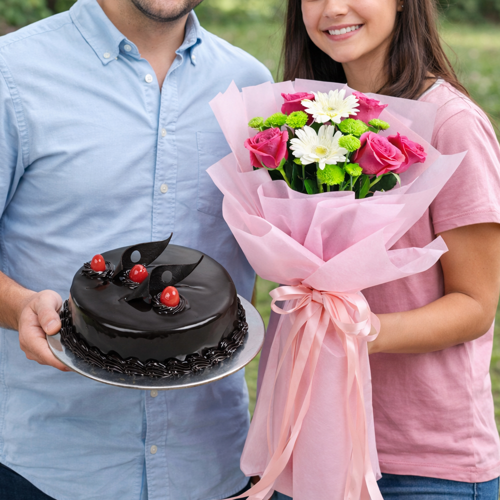 Roses Bouquet with Cake Combo.