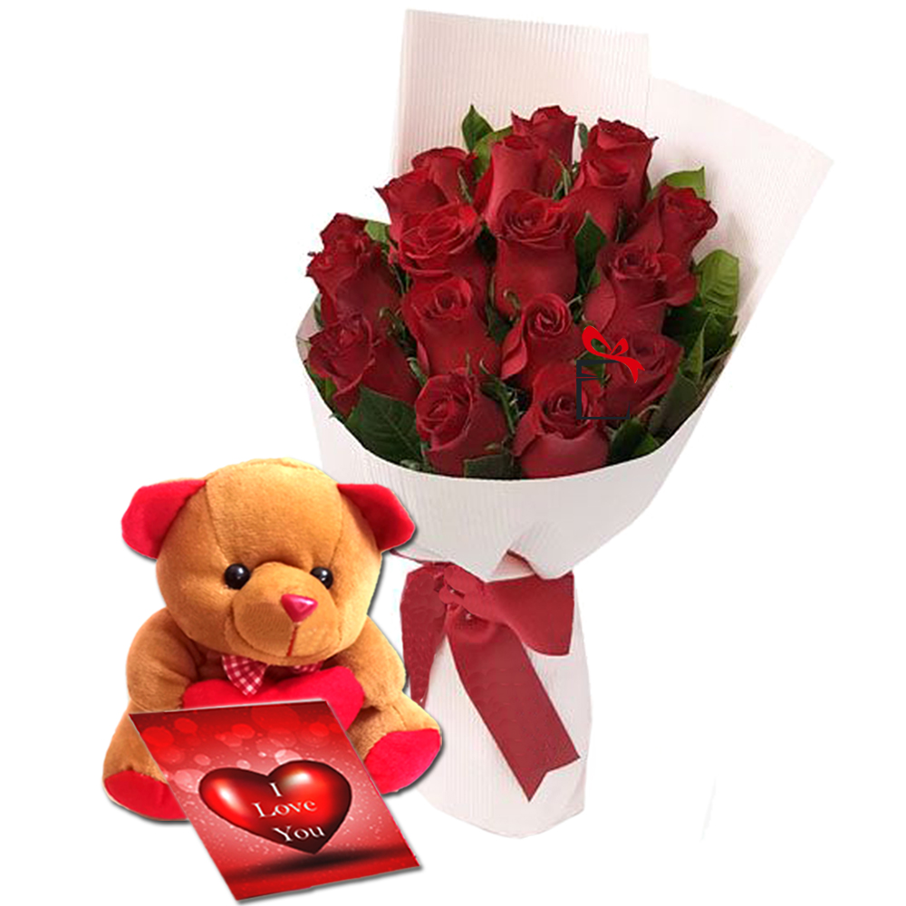 Arrange the roses in a hand-tied bouquet or a romantic wrap and add a cuddly teddy bear to the arrangement. This classic combination is perfect for anniversaries Valentine's Day or to express deep love.