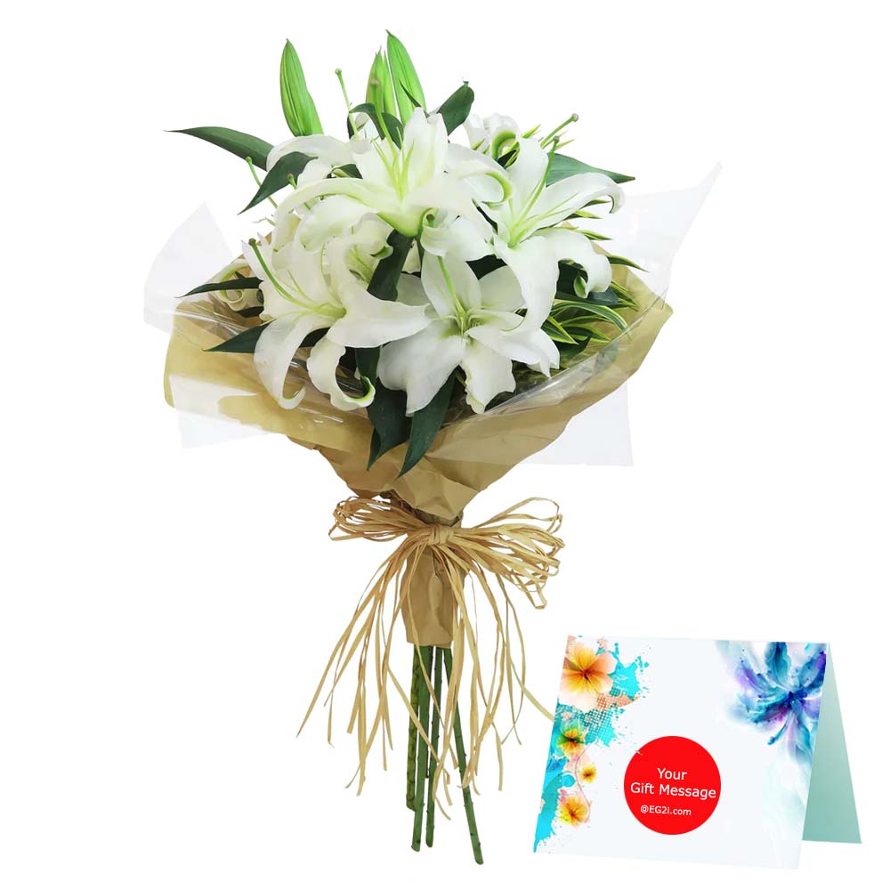 One Side Bouquet of 10 Steam White Asiatic Lilies.