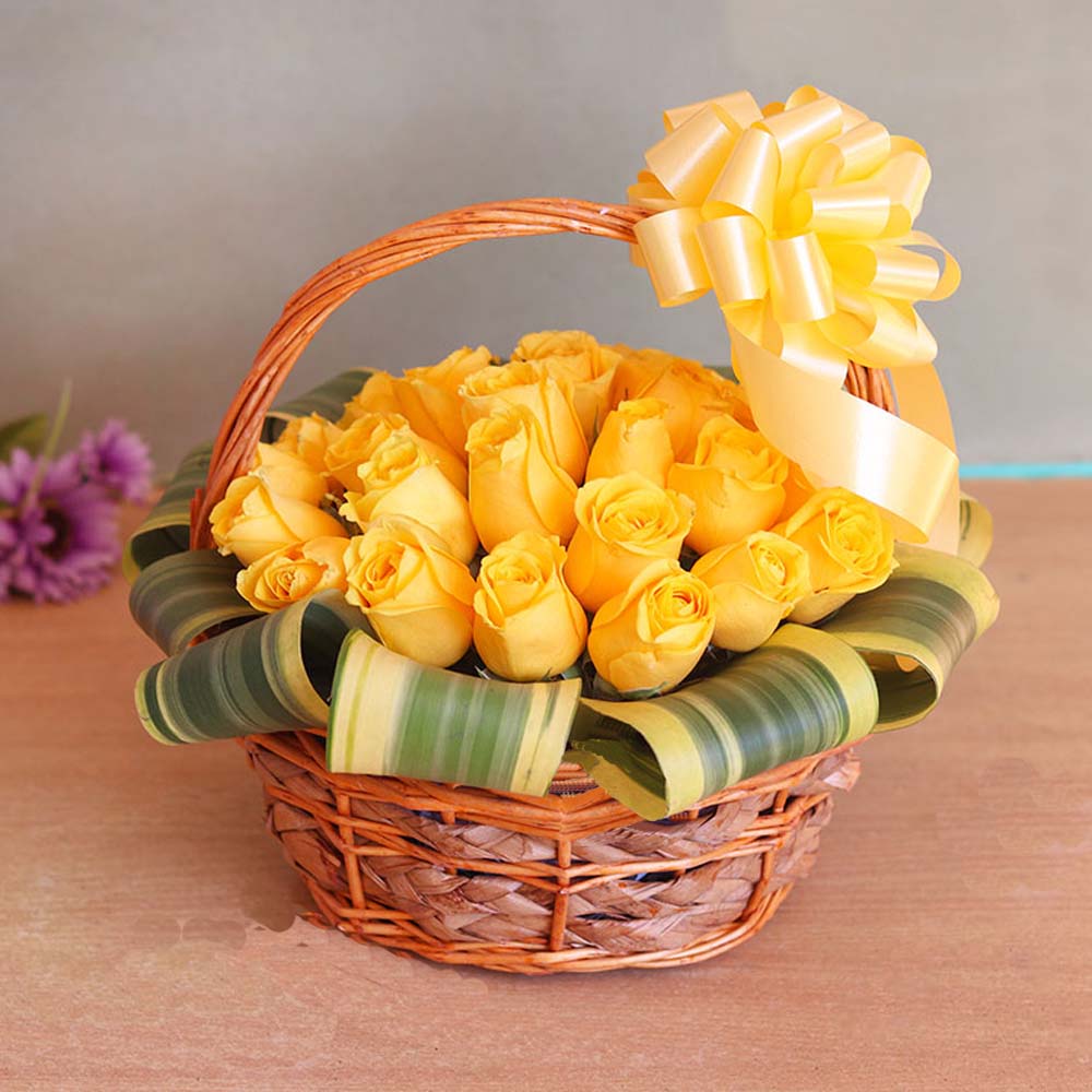 Send this Yellow Roses Basket Arrangement anywhere in India on same day or midnight delivery.Book your bouquet now