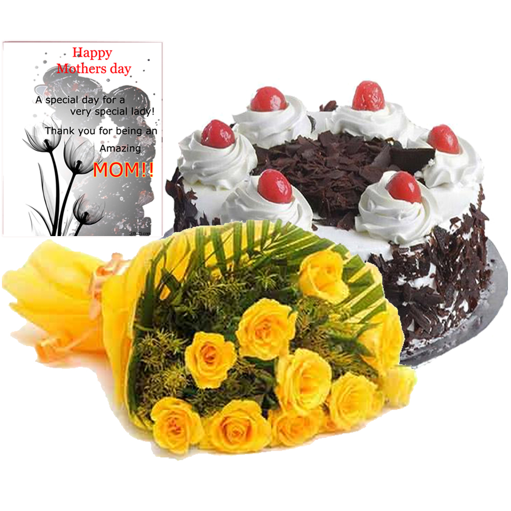Yellow Roses with Black Forest Cake
